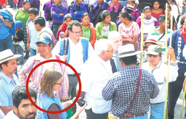 PEDRO ESQUINA TZINAY, y otros más; son custodiados por intrusos canadienses durante bloqueos de carreteras. Mark Romeril, de chaleco